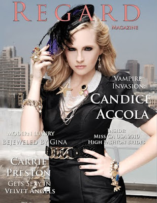Regard Magazine, Issue 2, is now available to view online. In this issue we have Candice Accola (Vampire Diaries), Carrie Preston (HBO True Blood), Jeanie Mai (How Do I Look), Nicole Johnson (Miss CA USA 2010) and much more! Designers include Dalia MacPhee, Velvet Angels, Tony Bowls, Kao Pao Shu, Bejeweled by Gina and Christiane King. Feel free to share with your friends…… Oh, and if you would like a hard copy for your library, you can order it from here..…